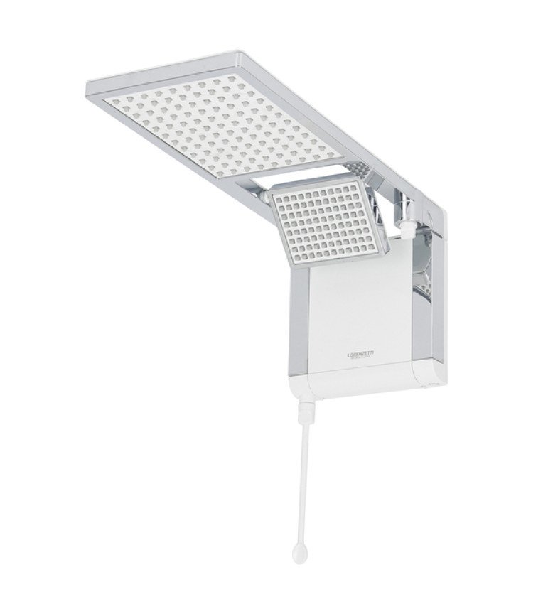 • Chuveiro Elétrico Eletrônico 127V (110V) 5500w Branco e Cromado Quadrado Acqua Duo Ultra Lorenzetti