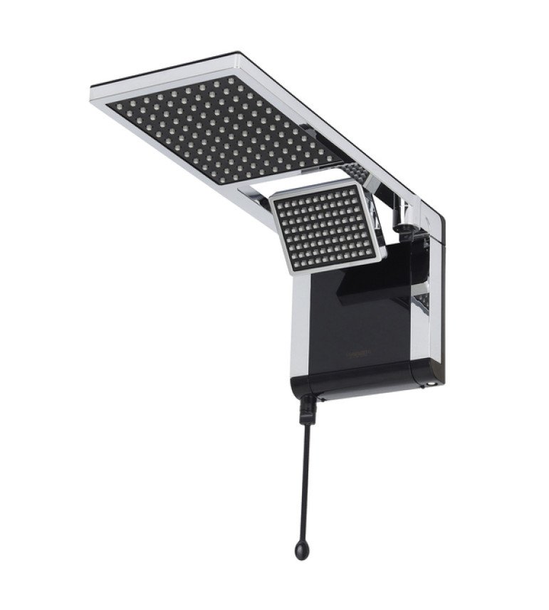 • Chuveiro Elétrico Eletrônico 127V (110V) 5500w Preto e Cromado Quadrado Acqua Duo Ultra Lorenzetti